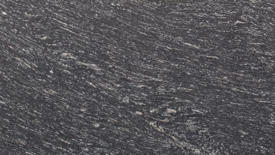 A deep black granite with swirling white veins, bold and effortlessly modern.